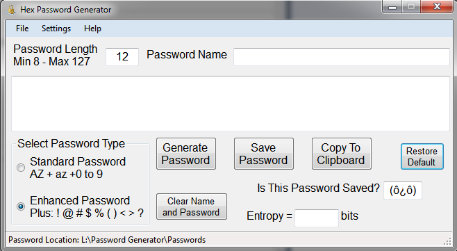 The Hex Password Generator is a small program used to create Random Passwords. In the Standard mode